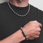 Dos piezas, un statement. El clásico Collar 00 junto a la nueva Pulsera 00 en un set exclusivo. Estilo bold inspirado en los 2000s.